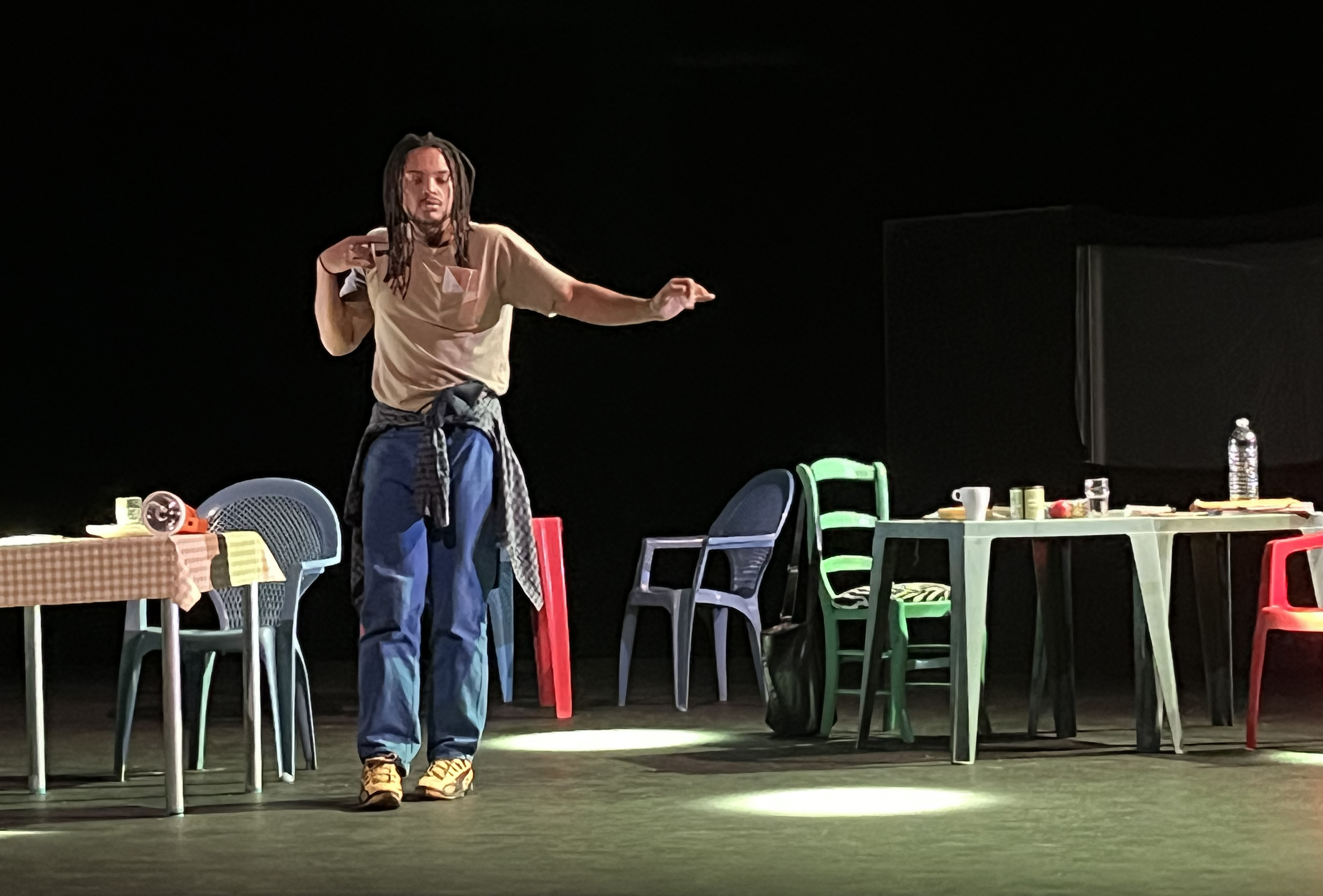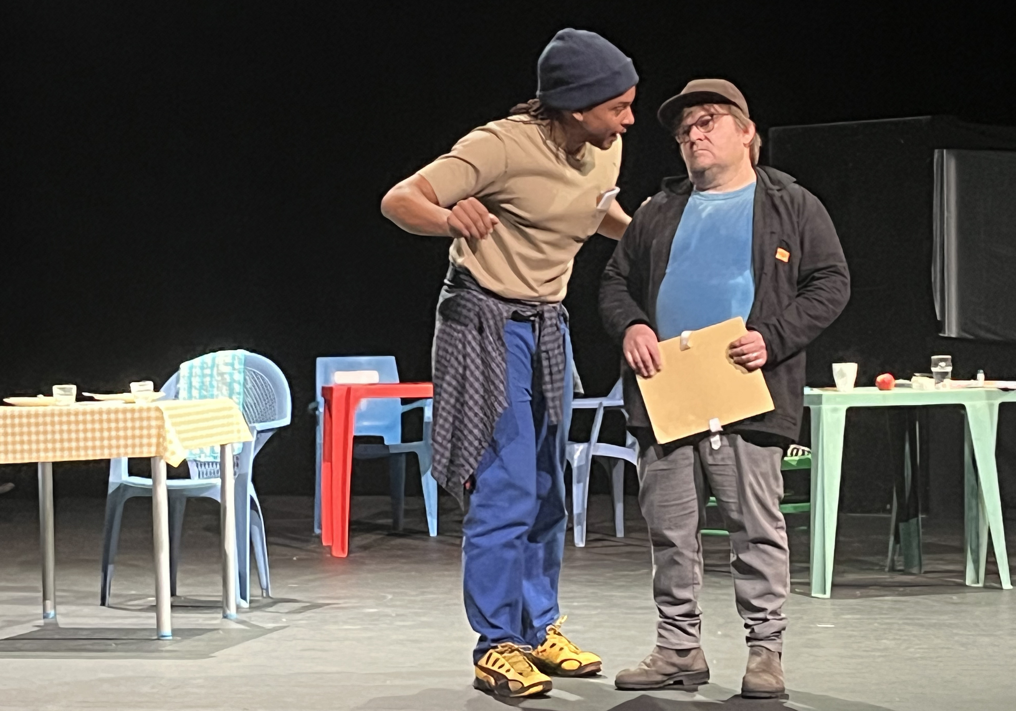 Côté plateau, il faut à chaque fois reconstruire un parcours, être déplacé⸱e et se laisser porter par des échos inédits entre les différentes scènes. Cette état d’être performatif permet un jeu où le présent prend le dessus. La parole gagne en intensité, laisse entendre singulièrement les mots, et les corps agissent dans une construction théâtrale chaque fois unique.