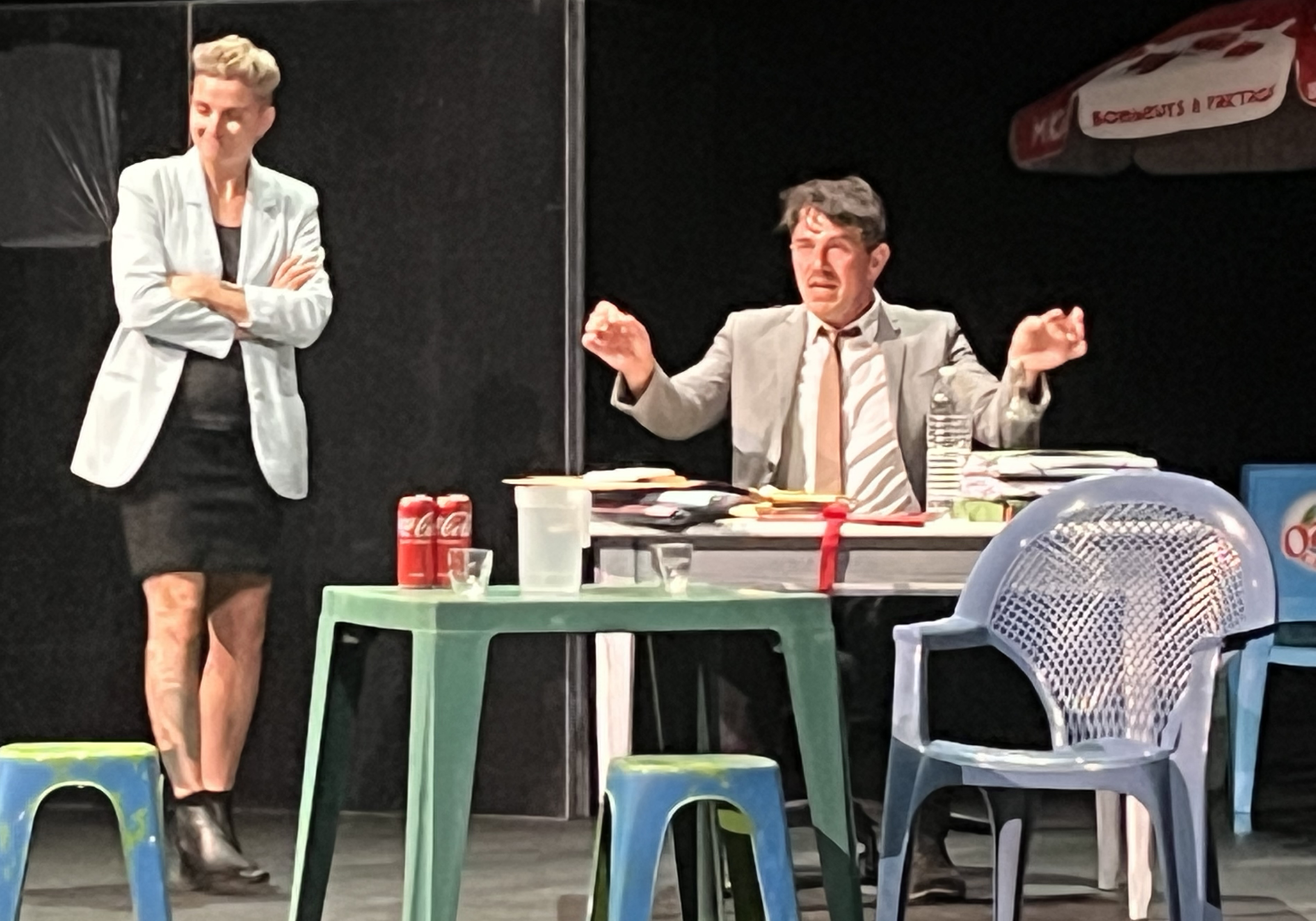 La pièce nous embarque dans un véritable thriller, mettant en scène les combats engagés autour d’une terre. Une terre convoitée par une grande compagnie qui prône l’agriculture intensive, la rentabilité maximale. Une terre défendue par un couple de petits propriétaires, dont la survie dépend.